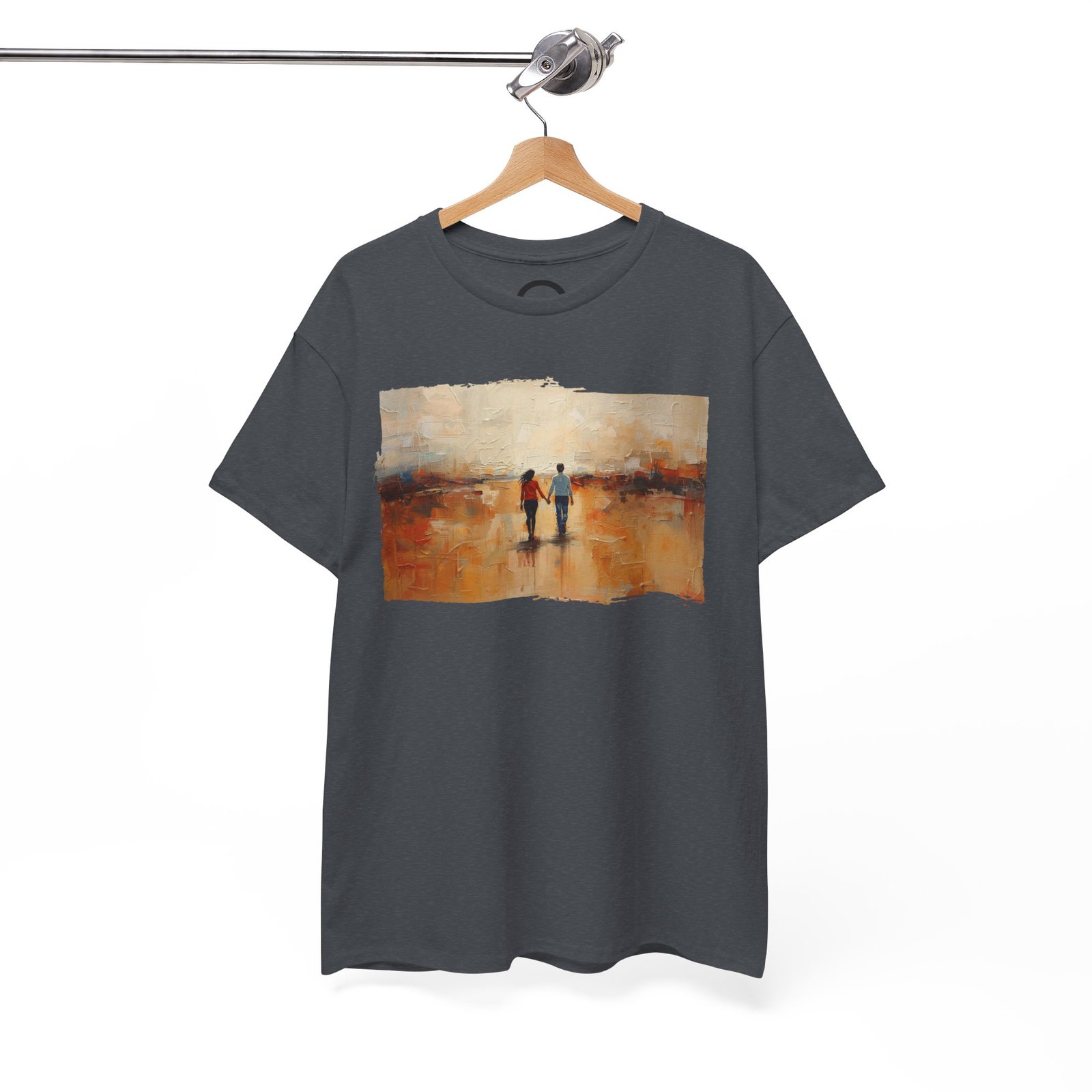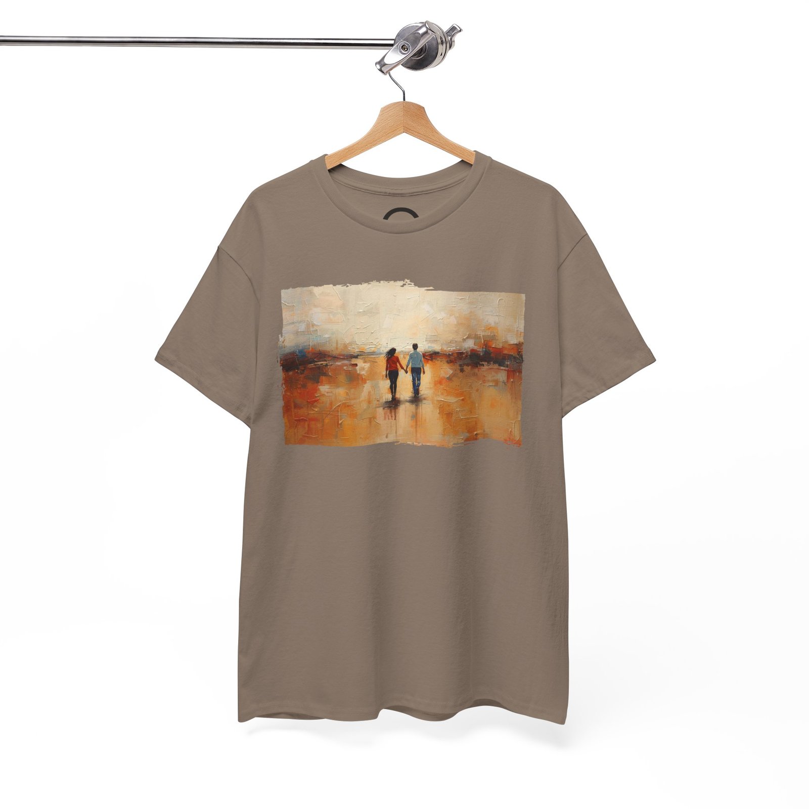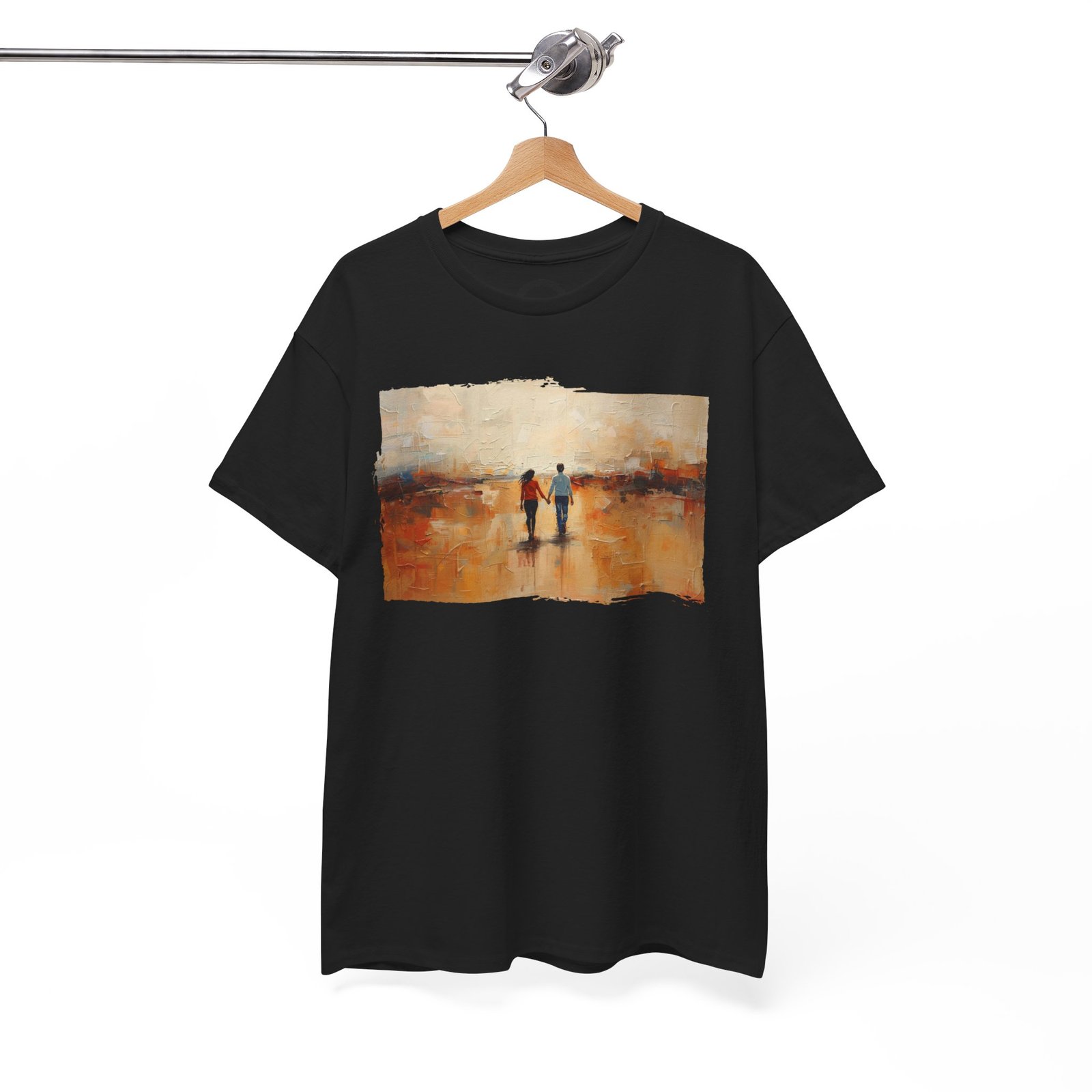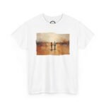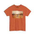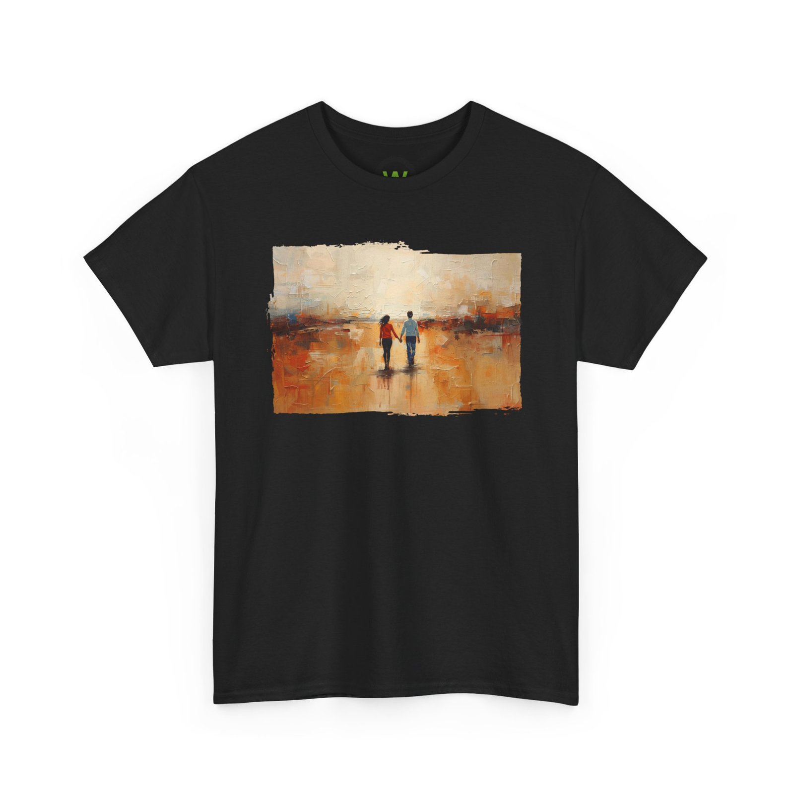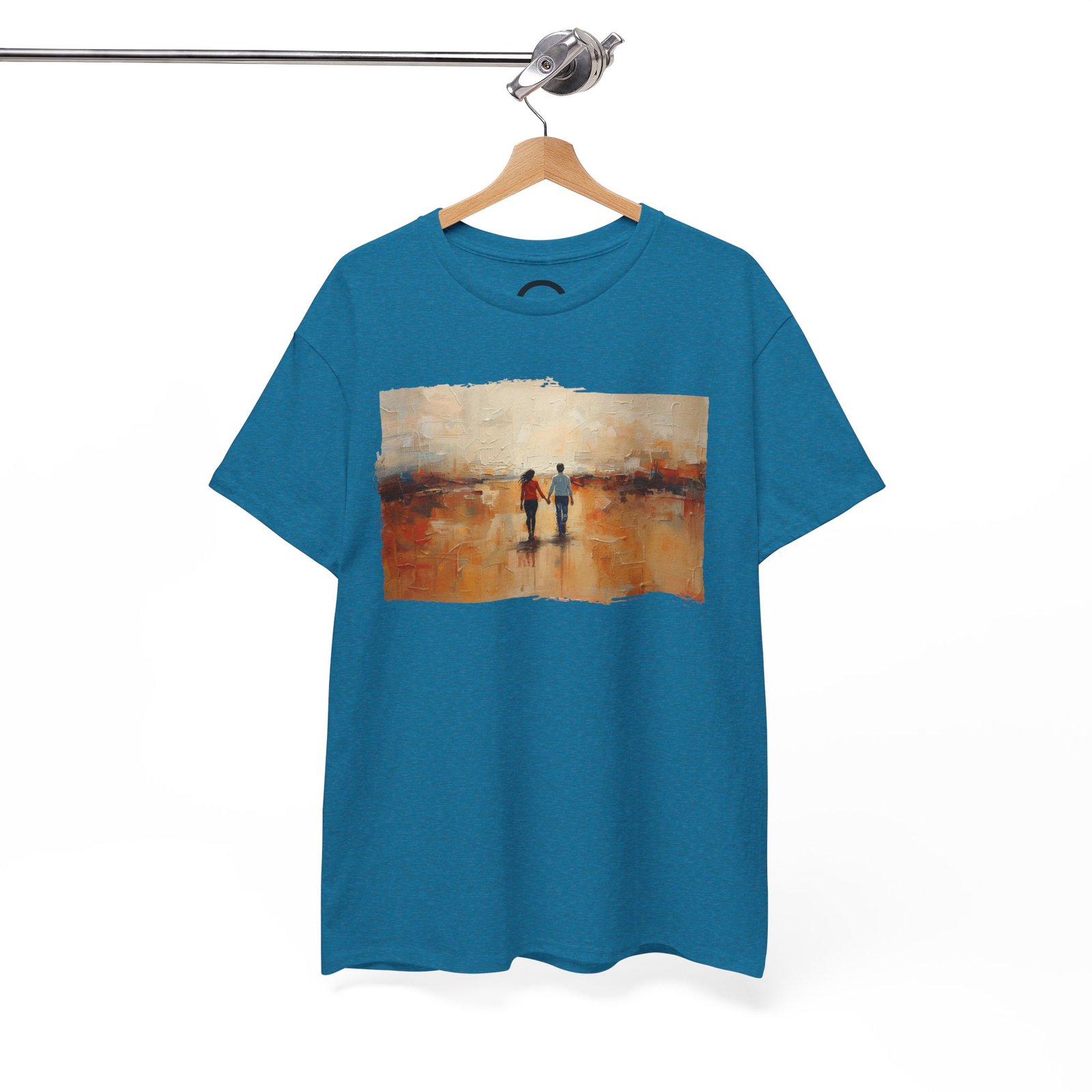 A soft, wearable snapshot of quiet companionship. This classic crew tee wears an impressionist painting across the chest — two figures standing together in warm, sunset tones — and translates that calm, reflective mood into everyday life. The medium-weight cotton drapes with relaxed structure, so the artwork sits naturally rather than feeling stiff. It’s the kind of shirt you reach for when you want comfort without losing a thoughtful, artful edge: for slow walks, coffee shop afternoons, or evenings that call for something simple and sincere.