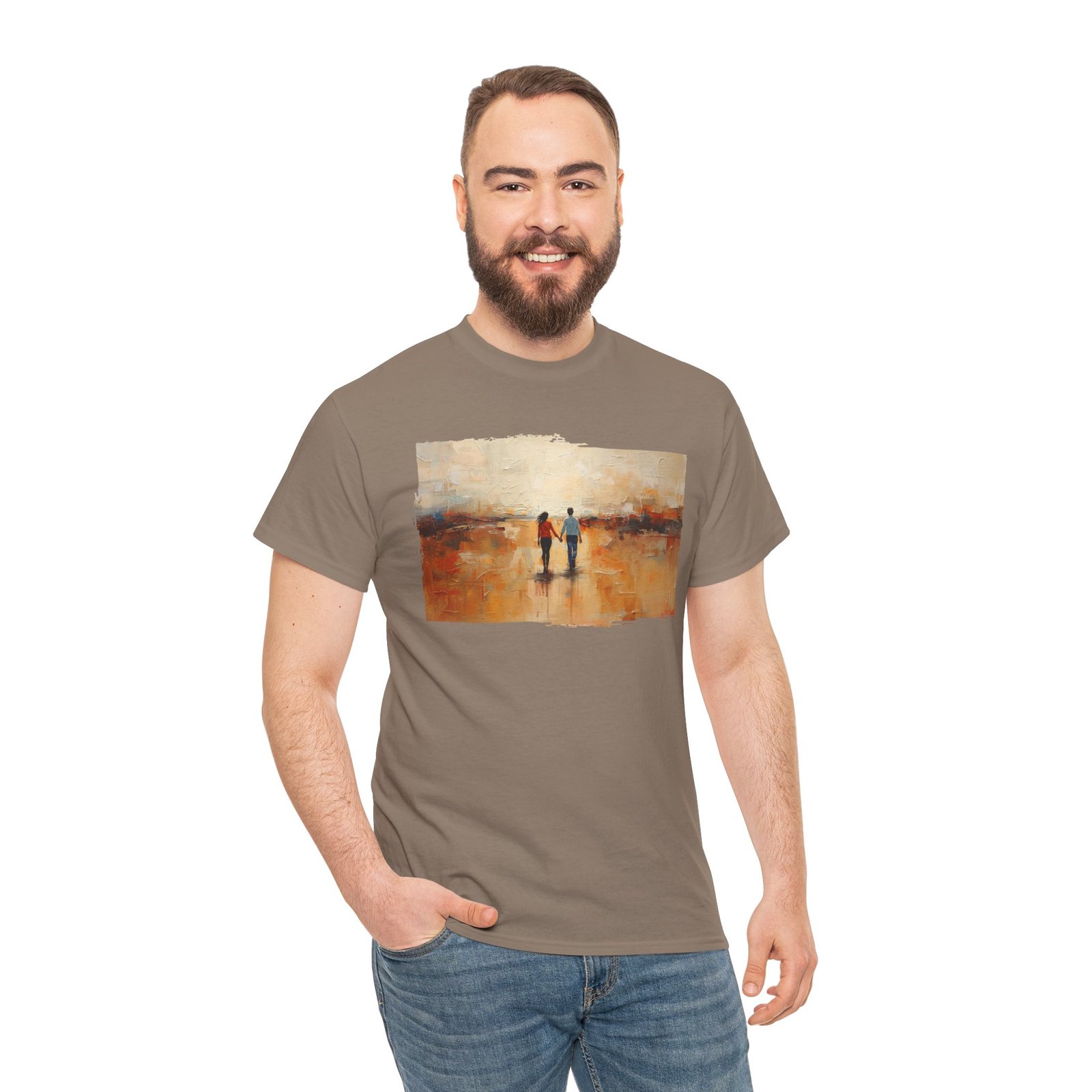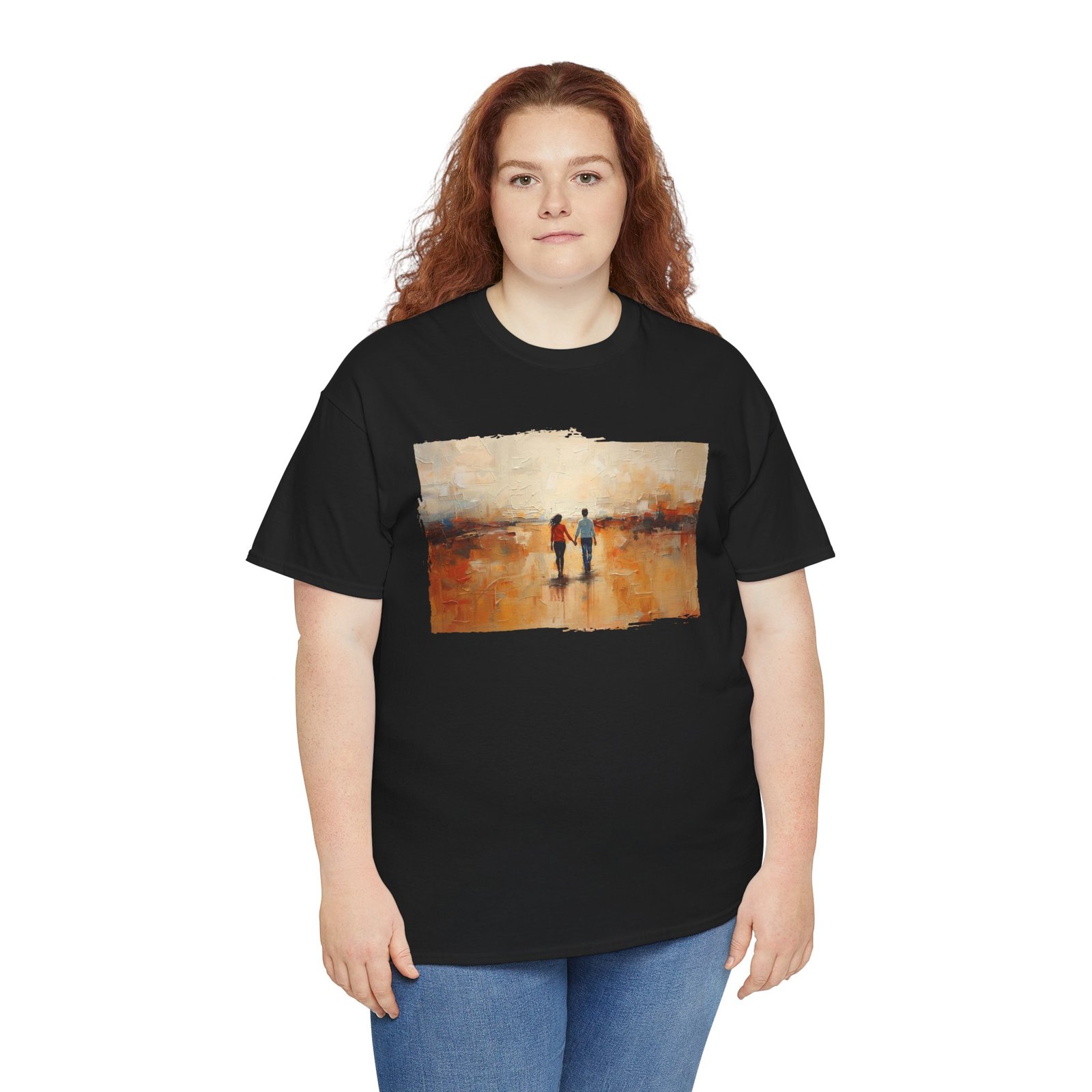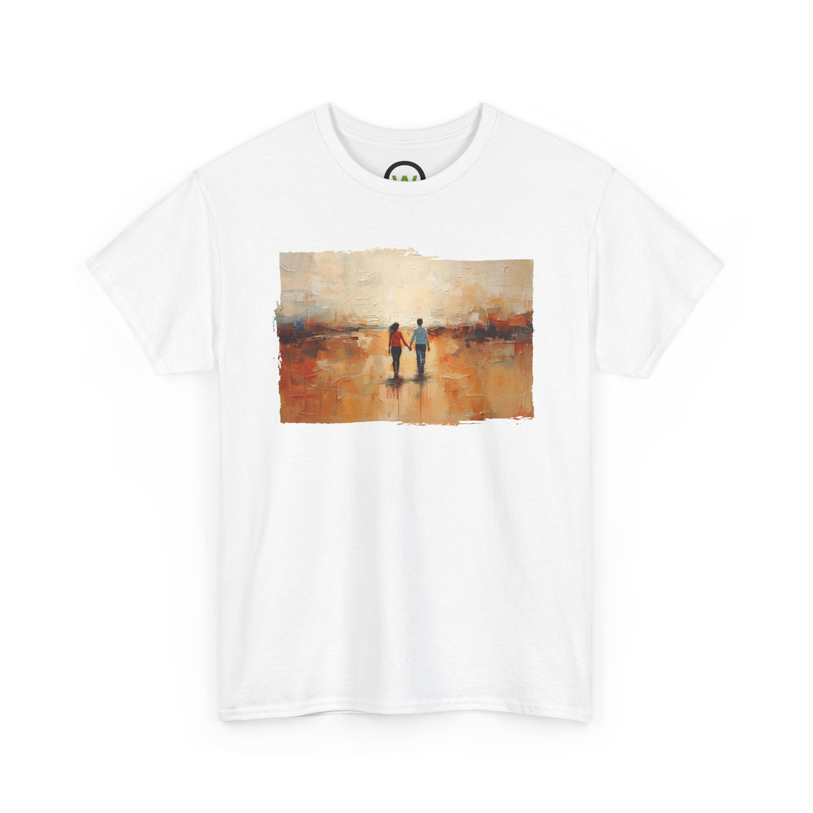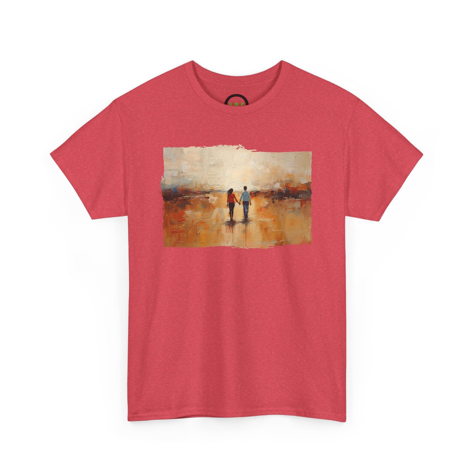 A soft, wearable snapshot of quiet companionship. This classic crew tee wears an impressionist painting across the chest — two figures standing together in warm, sunset tones — and translates that calm, reflective mood into everyday life. The medium-weight cotton drapes with relaxed structure, so the artwork sits naturally rather than feeling stiff. It’s the kind of shirt you reach for when you want comfort without losing a thoughtful, artful edge: for slow walks, coffee shop afternoons, or evenings that call for something simple and sincere.