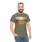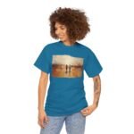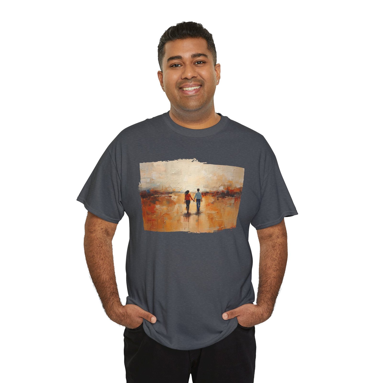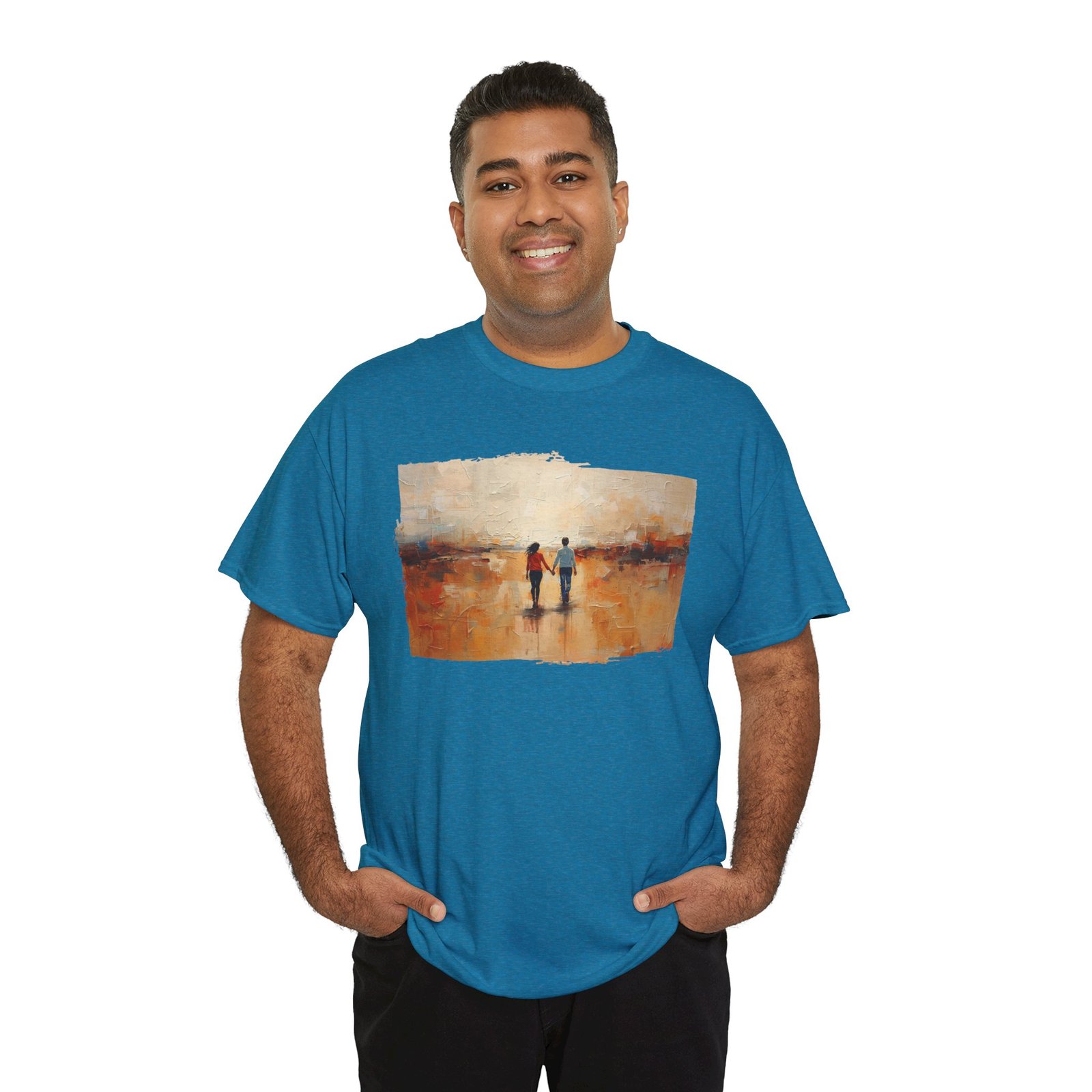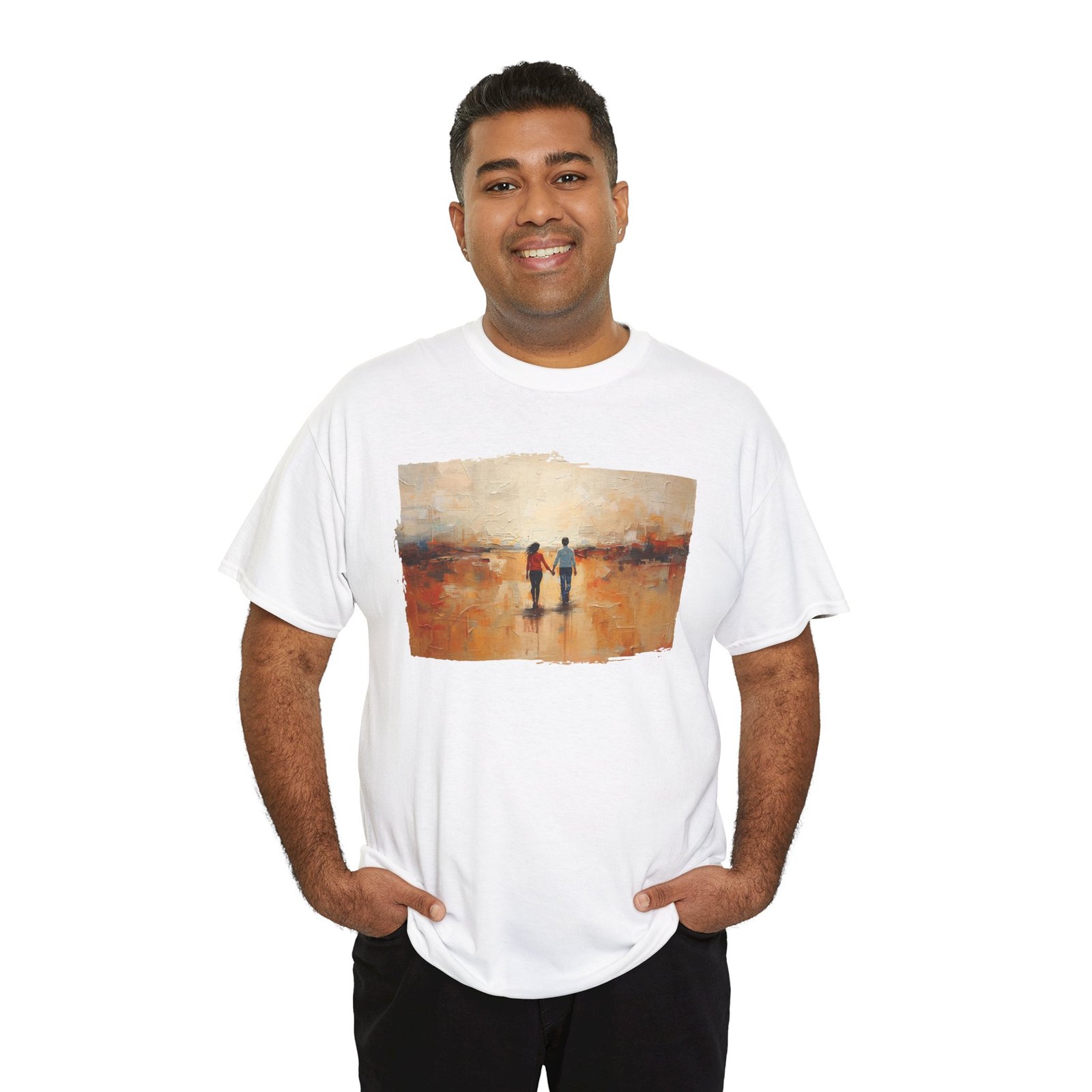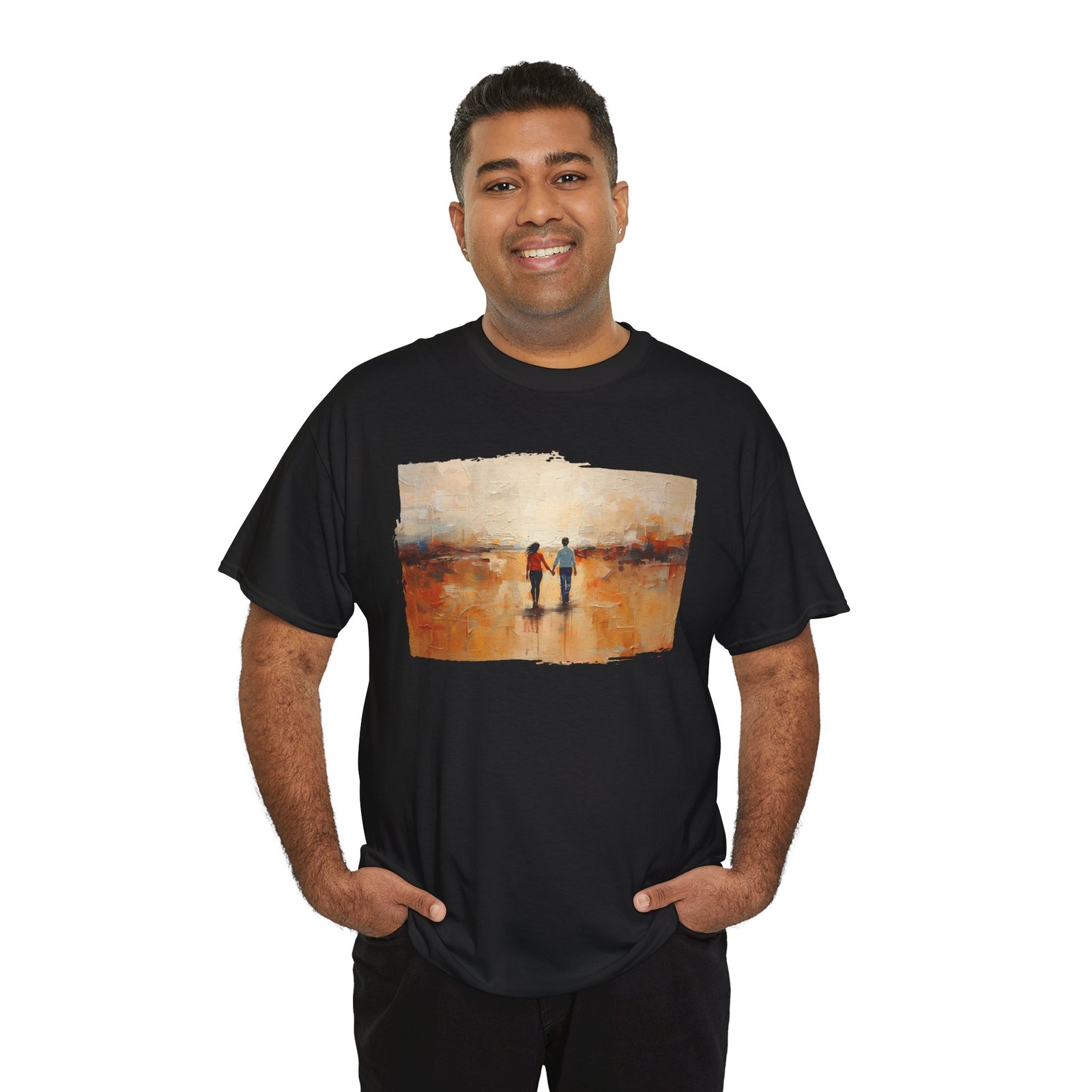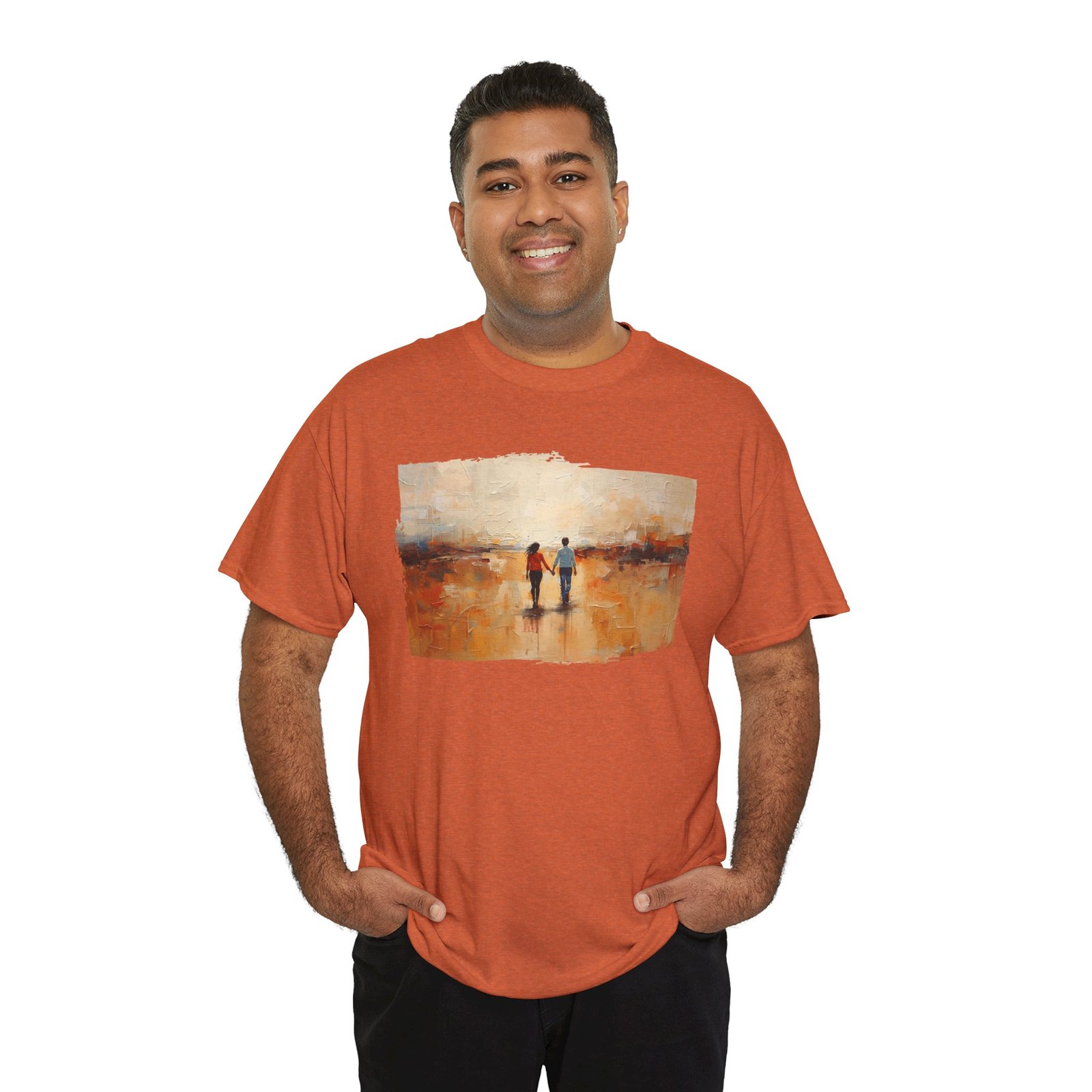 A soft, wearable snapshot of quiet companionship. This classic crew tee wears an impressionist painting across the chest — two figures standing together in warm, sunset tones — and translates that calm, reflective mood into everyday life. The medium-weight cotton drapes with relaxed structure, so the artwork sits naturally rather than feeling stiff. It’s the kind of shirt you reach for when you want comfort without losing a thoughtful, artful edge: for slow walks, coffee shop afternoons, or evenings that call for something simple and sincere.